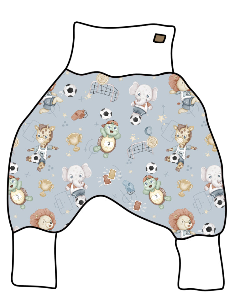 DIY-Paket Lange Pumphose Fußballtiere hellblau
