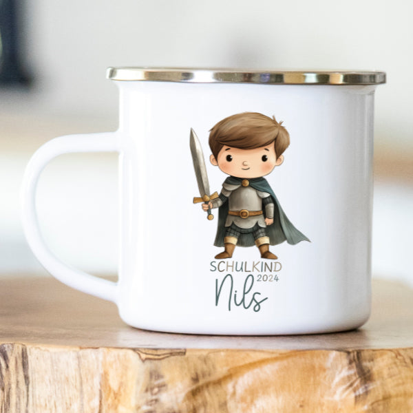 Personalisierte Emailletasse Schulkind 221 Ritter