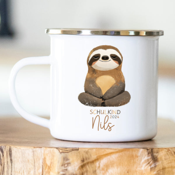 Personalisierte Emailletasse Schulkind 222 Faultier