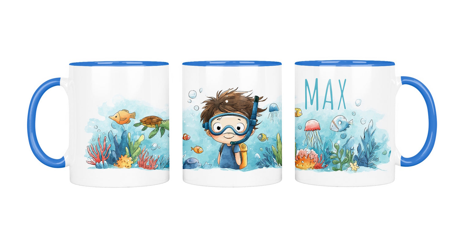 Personalisierte Keramiktasse (7 Farben) 617 Taucher