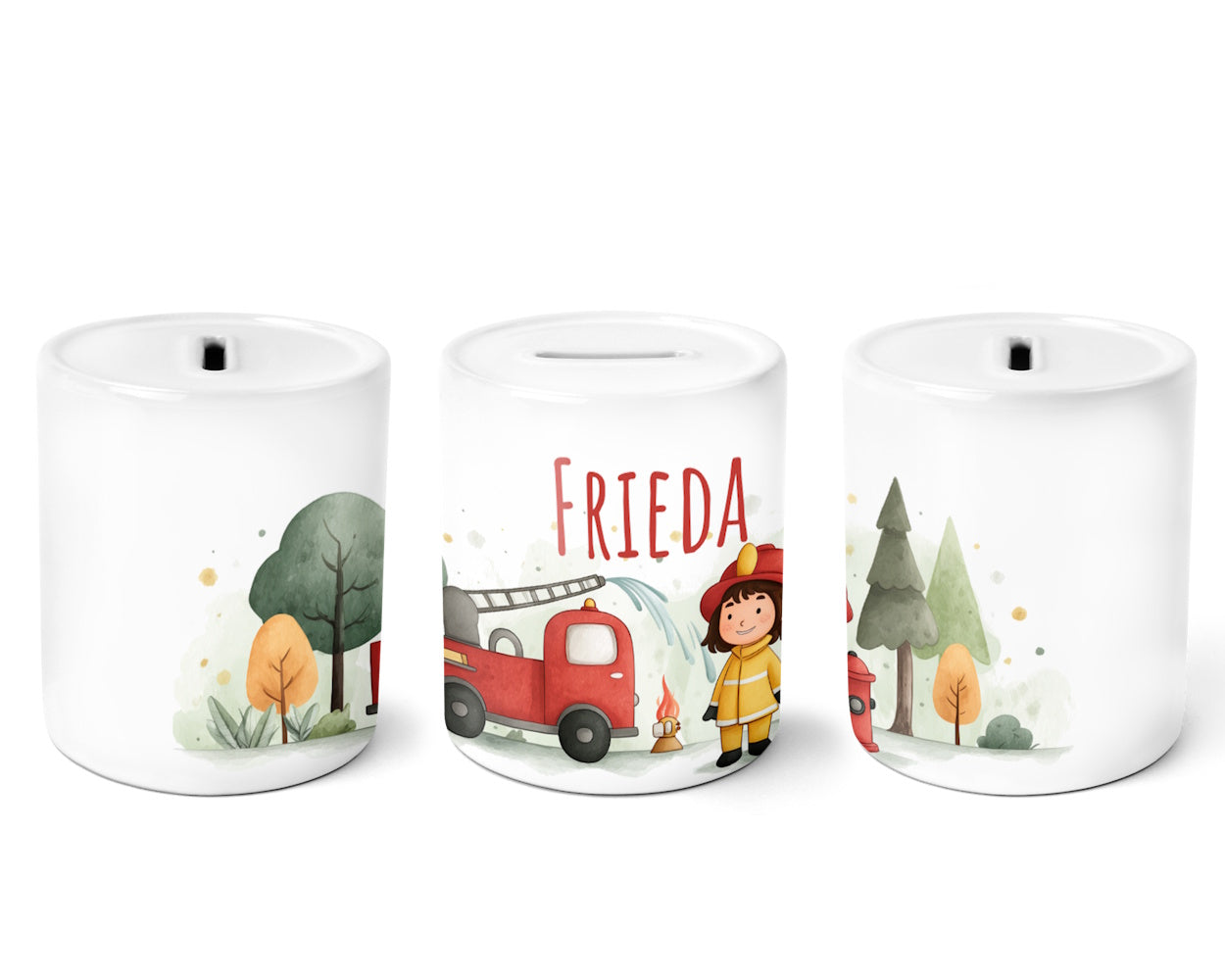 Personalisierte Spardose 612 Feuerwehr Mädchen
