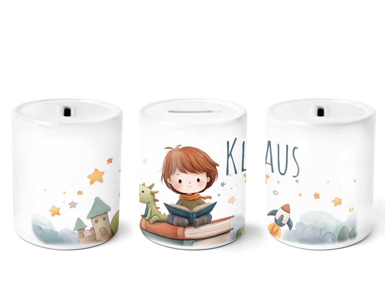 Was diese Spardosen so besonders macht, ist die Möglichkeit, sie ganz individuell zu personalisieren. Verleihe dem Kinderzimmer eine persönliche Note, indem du den Namen deines kleinen Schatzes oder eine besondere Botschaft auf der Spardose verewigst. Unsere hochwertige Drucktechnologie sorgt dafür, dass die Personalisierung nicht nur schön aussieht, sondern auch langlebig ist – genau wie die Träume, die in dieser Spardose Platz finden.